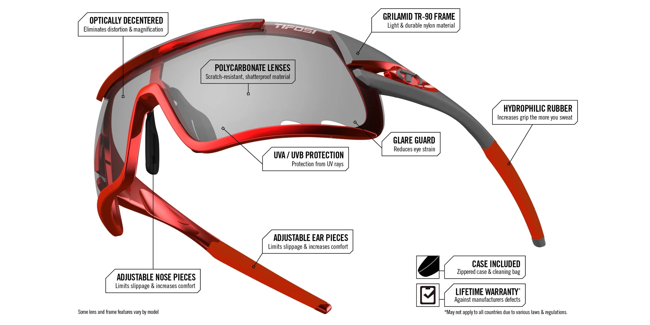 Proteja sus Gafas de sol TIFOSI Davos Race Red Fotocromáticas con el estuche rígido incluido y limpie sus lentes con la bolsa de limpieza de microfibra.
