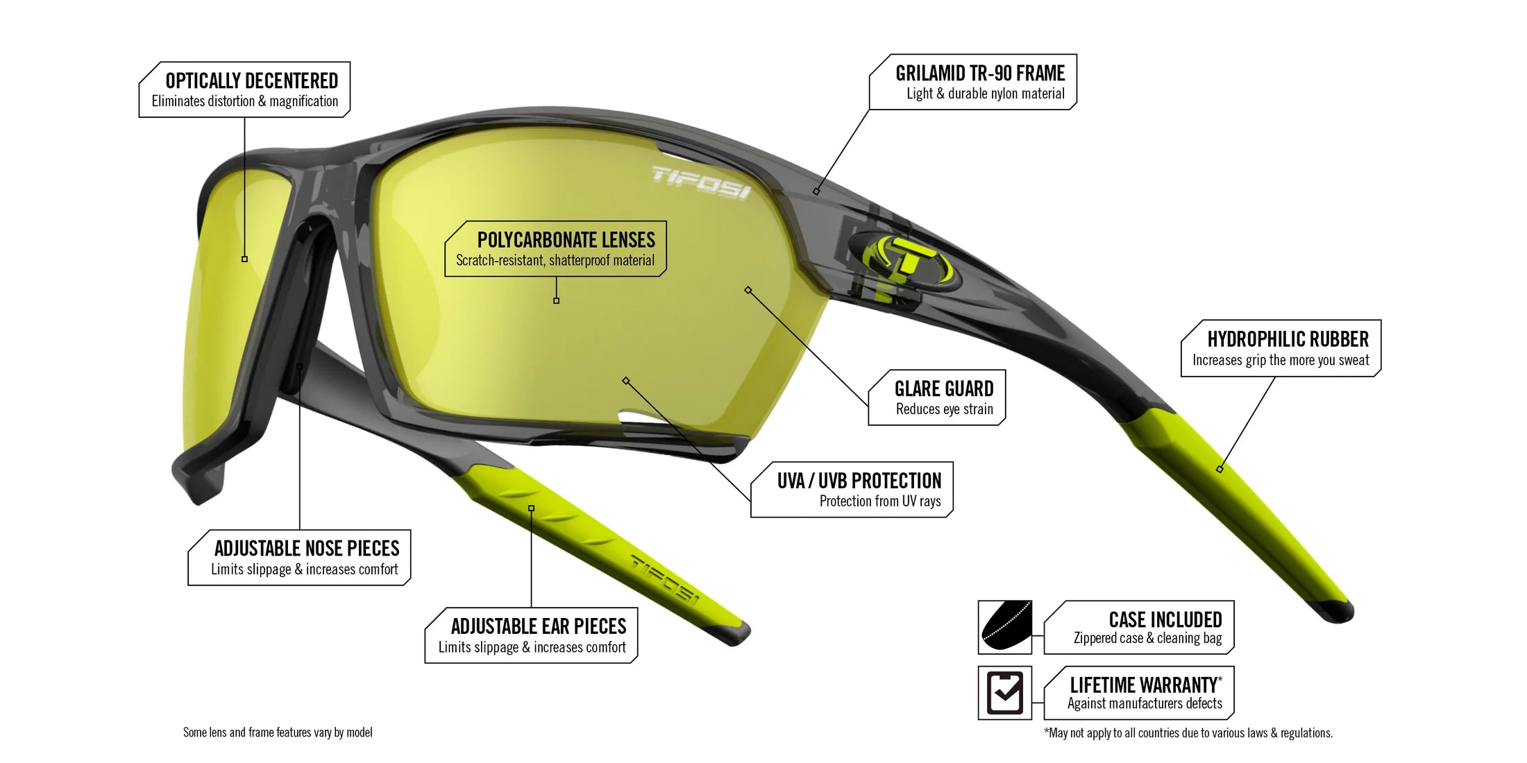 En Tifosi, creemos que todo deportista merece gafas de sol acordes con su estilo de vida activo. Es por eso que hemos diseñado Kilo para que sean las mejores gafas de sol para ciclismo y carrera, brindando la protección y el soporte necesarios para superar tus límites. Ya sea entrenando o compitiendo, Kilo será tu accesorio ideal para cualquier actividad.